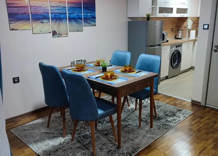 Апартаменты располагают оснащённой всем необходимым кухней с микроволновой печью, электрочайником и кухонной утварью. Ресторан Kish Food, Drinks and Friends, который располагается в 5 минутах ходьбы, предлагает блюда итальянской кухни. Апартаменты находятся 15 минутах езды от аэропорта Бургаса. Гости могут пользоваться солнечной террасой и внутренним двором.